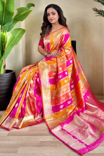 Every woman should have a Banarasi saree in her closet since it is so special. This saree is made by hand with delicate silk threads and intricate zari work. It shows off the rich history of Indian handicraft. A Banarasi saree is more than simply clothing; it’s an heirloom that may be passed down from one generation to the next. People typically wear these sarees to weddings, festivals, and other cultural events because they look royal and never go out of style. Banarasi sarees have beautiful patterns and bright colours that make the wearer feel like a queen and make any event look royal.